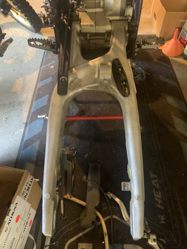 Pour la partie cycle AR, on est pas mal ! Je t’avais dit en intro que la partie suspensions, on regarderai ça une fois que j’aurais roulé avec la moto, donc pour le moment, je laisse tel quel ! Il ne me restera qu’à remonter la chaine et changer les pneus et on est bon.
